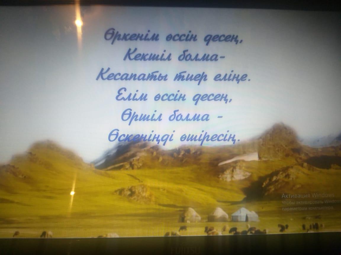 Рухани -адамгершілік тәрбие бағыты бойынша 9.11.2020 жылы 8-сынып оқушыларымен сынып жетекшісі А.Сақтағанова "Ата-бабамның даналығы"тақырыбында онлайн танымдық сағатын өткізді.Іс-шара барысында оқушыларға ата-бабамыздан келе жатқан даналық сөздердің мәні,мағынасы толықтай түсіндірілді.