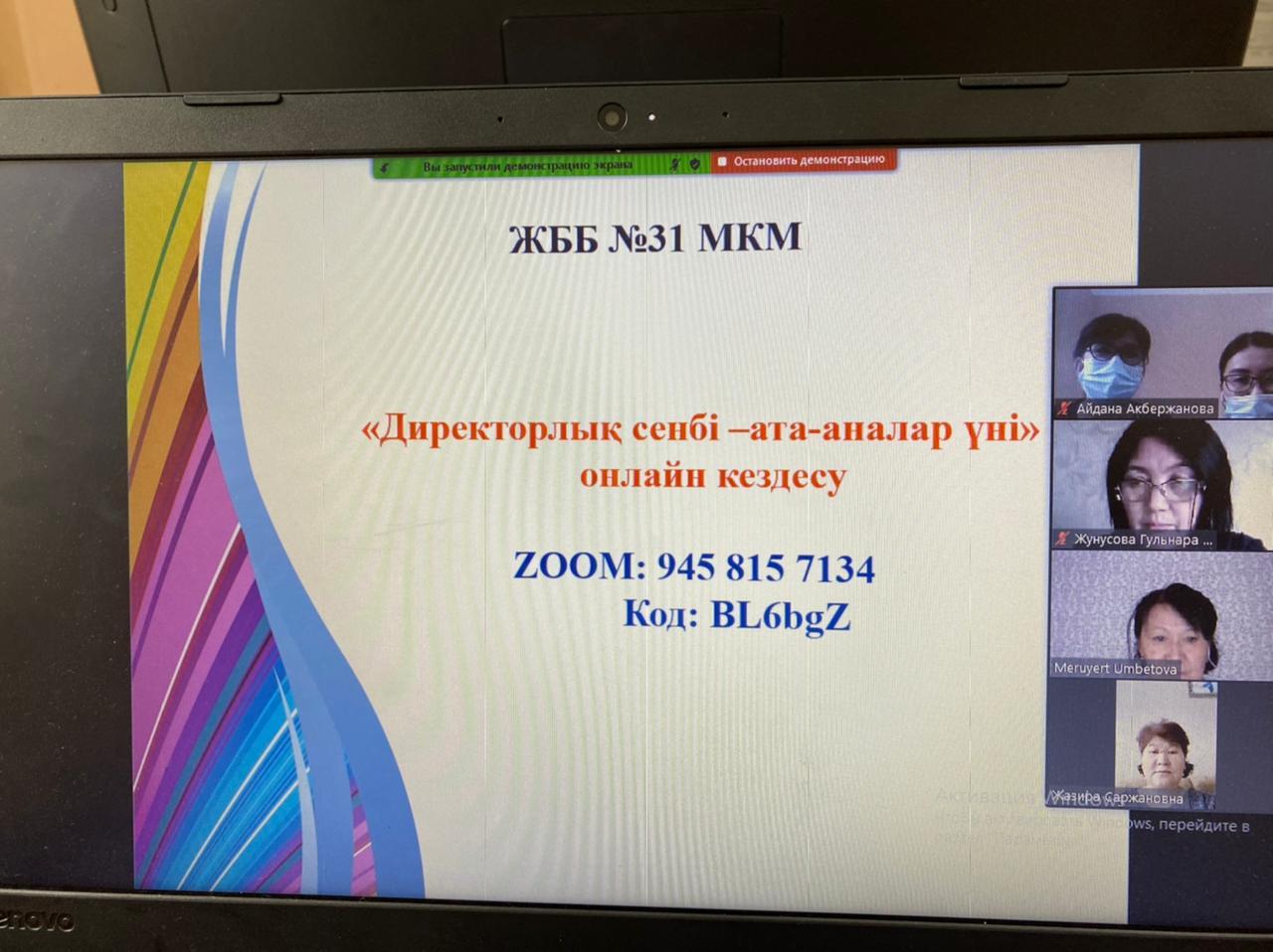13.03.2021 куні мектебіміздіе "Директорлық сенбі-ата -ана үні" тақырыбында онлайн кездесу өтілді.Кездесуге 10-11 сынып оқушыларының ата-аналары қатысты.ҰБТ-ға дайындық кезеңінде ата-аналардың балаларға қандай психологиялық көмек бере алатыны туралы айтылды.