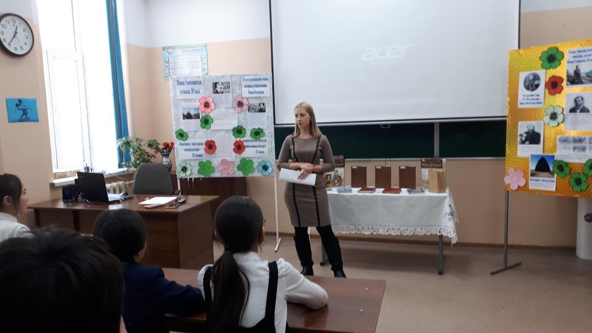 В КГУ ОШ№31 библиотекарем школы проведено общешкольное мероприятие, посвященное юбилею великого казахского ученого и путешественника Чокана Валиханова, приглашенная гостья из городской детской библиотеки №30 Анастасия Владимировна очень много рассказала учащимся о его патриотических чувствах, свободе казахов и дружеских отношениях с русскими демократами современниками. Открытия, сделанные им, поставили молодого поручика русской армии в ряд с выдающимися географами мира. Валиханову принадлежат труды по географии, истории, этнографии, экономике, социологии Казахстана, он сделал записи казахского фольклора. Первый казахский русскоязычный ученый Чокан Чингисович Валиханов, востоковед, историк, этнограф, просветитель, оставил большое научное и литературное наследие, сыгравшее важную роль в воспитании молодого поколения юных воинов и офицерского состава в духе казахстанского патриотизма на современном этапе становления Воруженных сил Республики Казахстан. 5 ноября (1835 год) великому сыну казахского народа исполнится 185 лет.