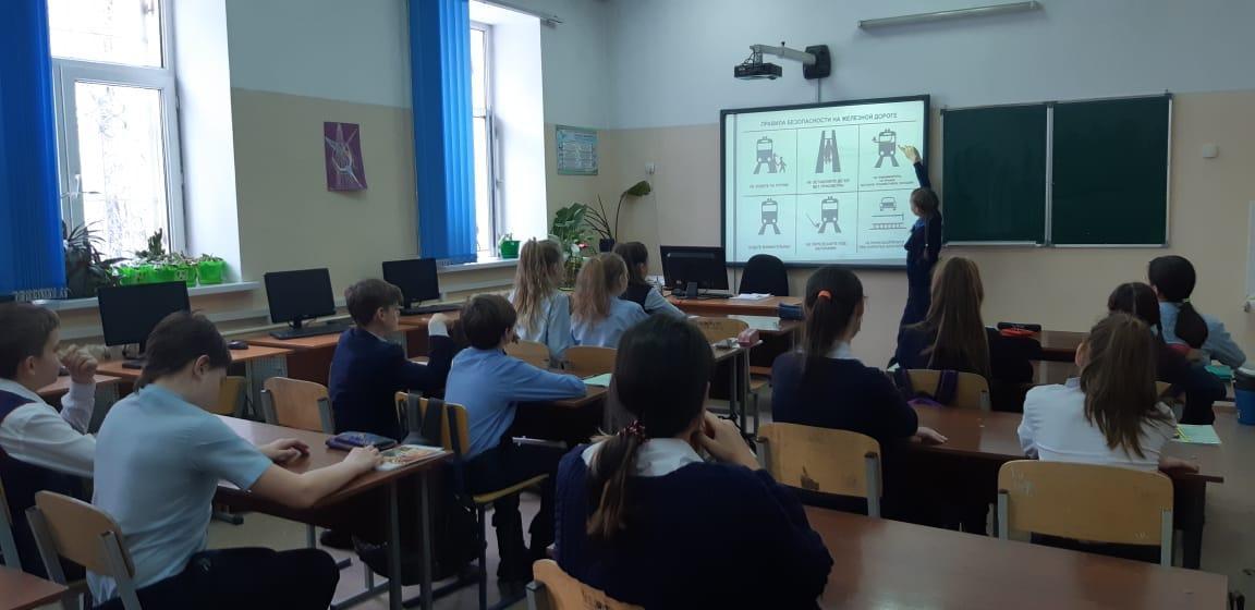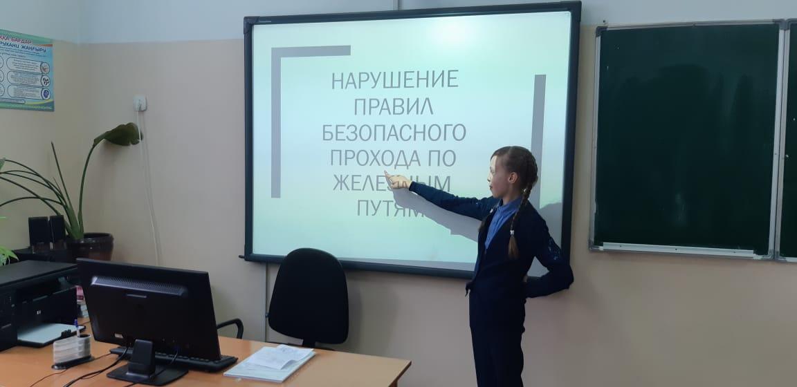 В школе проведен тематический классный час в 6Б классе Акбержановой А.Б. на тему: «Безопасность на дорогах железнодорожного транспорта»