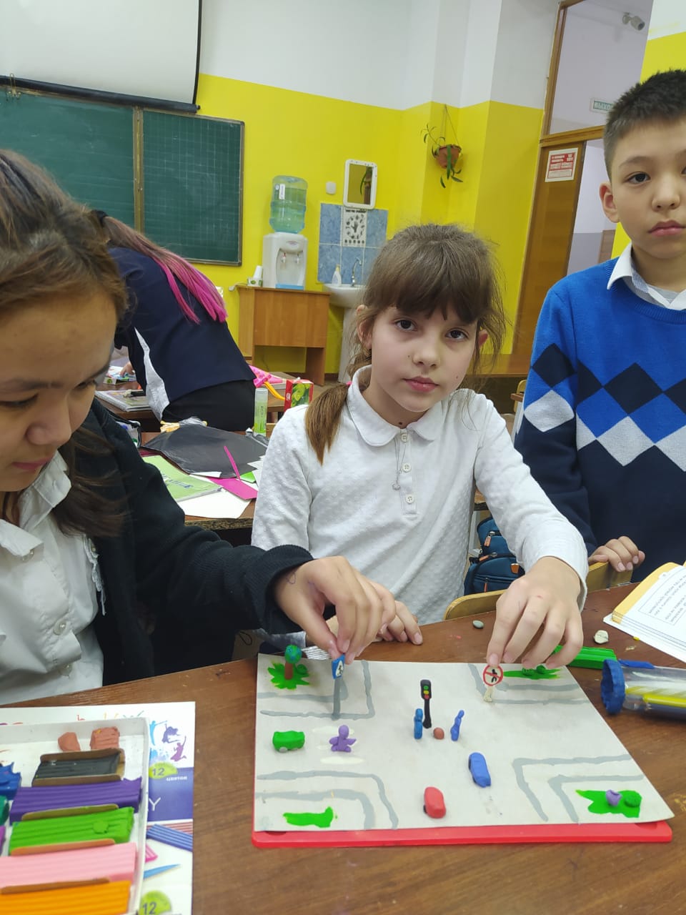 Жол ережесін сақтайық тақырыбында 1-8 сынып оқушылары арасында сынып сағаттары өтті.1-4 сынып оқушылары пластилин, түсті қағаздардан жол белгілерін мүсіндесе, 5-8 сынып оқушыларымен жол ережелері туралы викторина ұйымдастырылды.