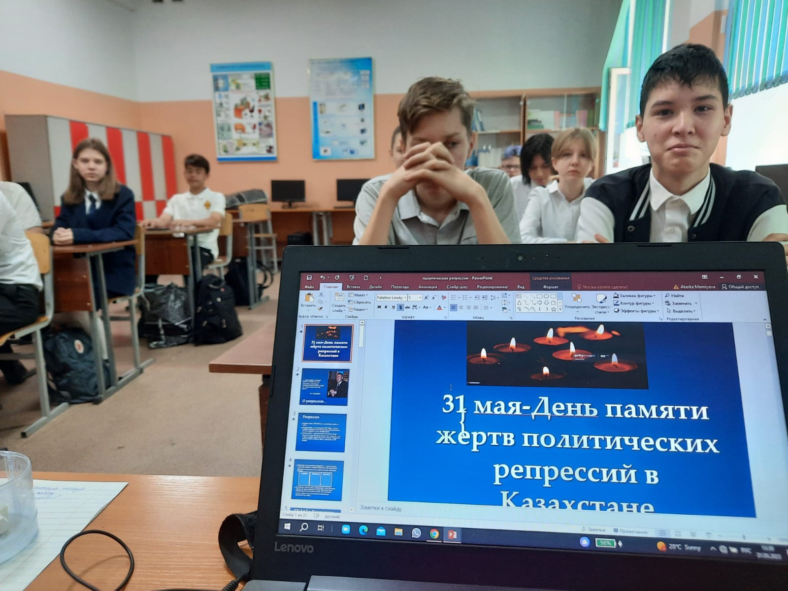 «31 Мамыр – Саяси құғын сүргін құрбандарын еске алу күні» тақырыбында сынып оқушыларымен тәрбие сағаттары өтті.Мақсаты: 31 мамыр - саяси қуғын-сүргін құрбандарын еске алу күнін білу. Оқушыларға халықының өткенін ұмытпауға, өз туған жеріне деген сүйіспеншілігін арттыру мақсатында халық қамын ойлаған ағалар ісін үлгі ету.