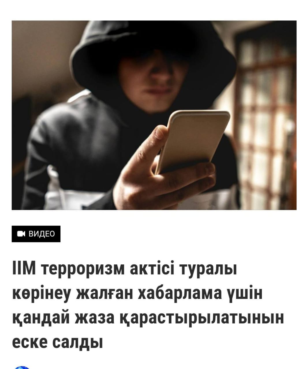 Терроризм актісі туралы көрінеу жалған хабарлама үшін жаза