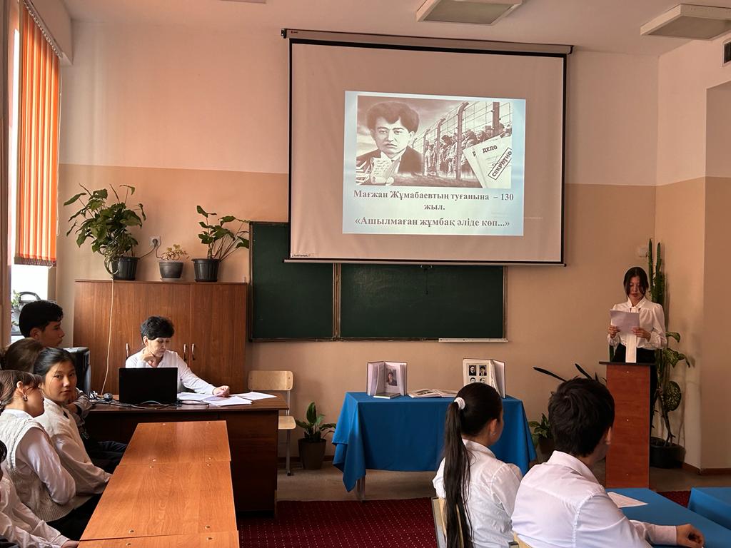 Мағжан Жұмабаевтың туғанына 130 жыл: Ашылмаған жұмбақ әлі де көп. Ал олардың сырын ашып, қазақ үшін тер төккен ұлт перзентін тереңірек таныстыру мақсатымен тарих пәнінің мұғалімі Мамиева А.М. 10-11 сынып оқушыларымен ғылыми-практикалық конференция өткізді.