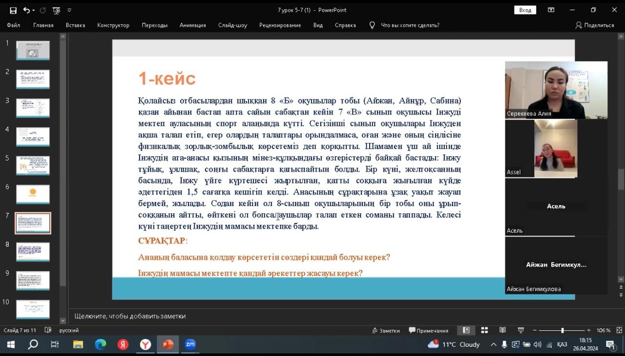 Ата-аналарды қолдау орталығының 7-ші сабағы/ 7-й урок центра поддержки родителей