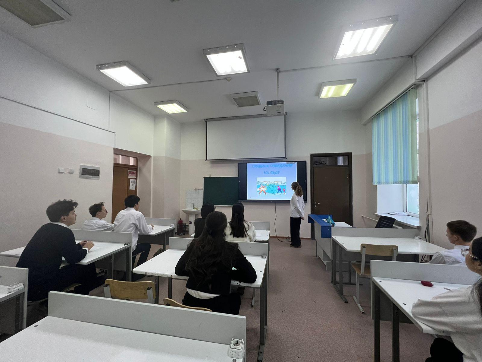 В соответствии с планом программы “Біртұтас тәрбие” среди учащихся 1-11 классов был проведен воспитательный час на тему “Осторожно, тонкий лёд!”.