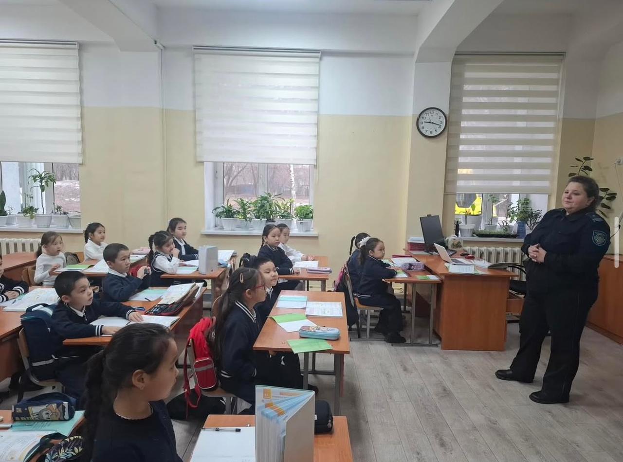 Турксибского района майор полиции Джембабаева М.Е. и УИП ст. лейтенант полиции Журтбаев О. совместно провели беседу 4-6 клаасов на тему: "Разрешено законом"