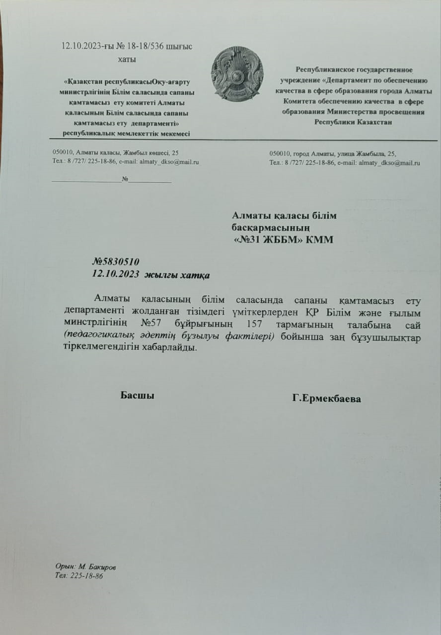12 қазан 2023 0 1 2 3 4 5 Алматы қаласының білім саласында сапаны қамтамасыз ету департаменті ақпараты