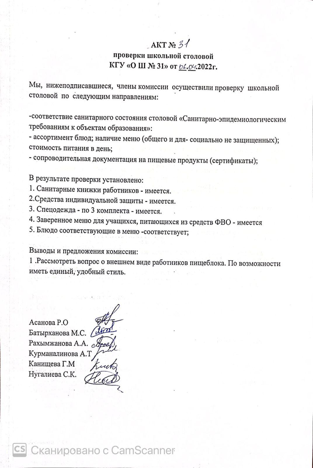 06 сәуір 2022 0 1 2 3 4 5 АКТ проверки школьной столовой членами комиссии по контролю за качеством питания от 06.04.2022 г.