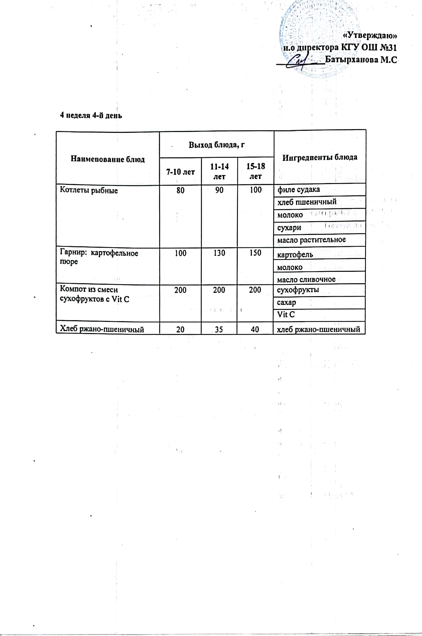 » Ас мәзірі 4 апта 4 күн. Меню 4 неделя 4 день