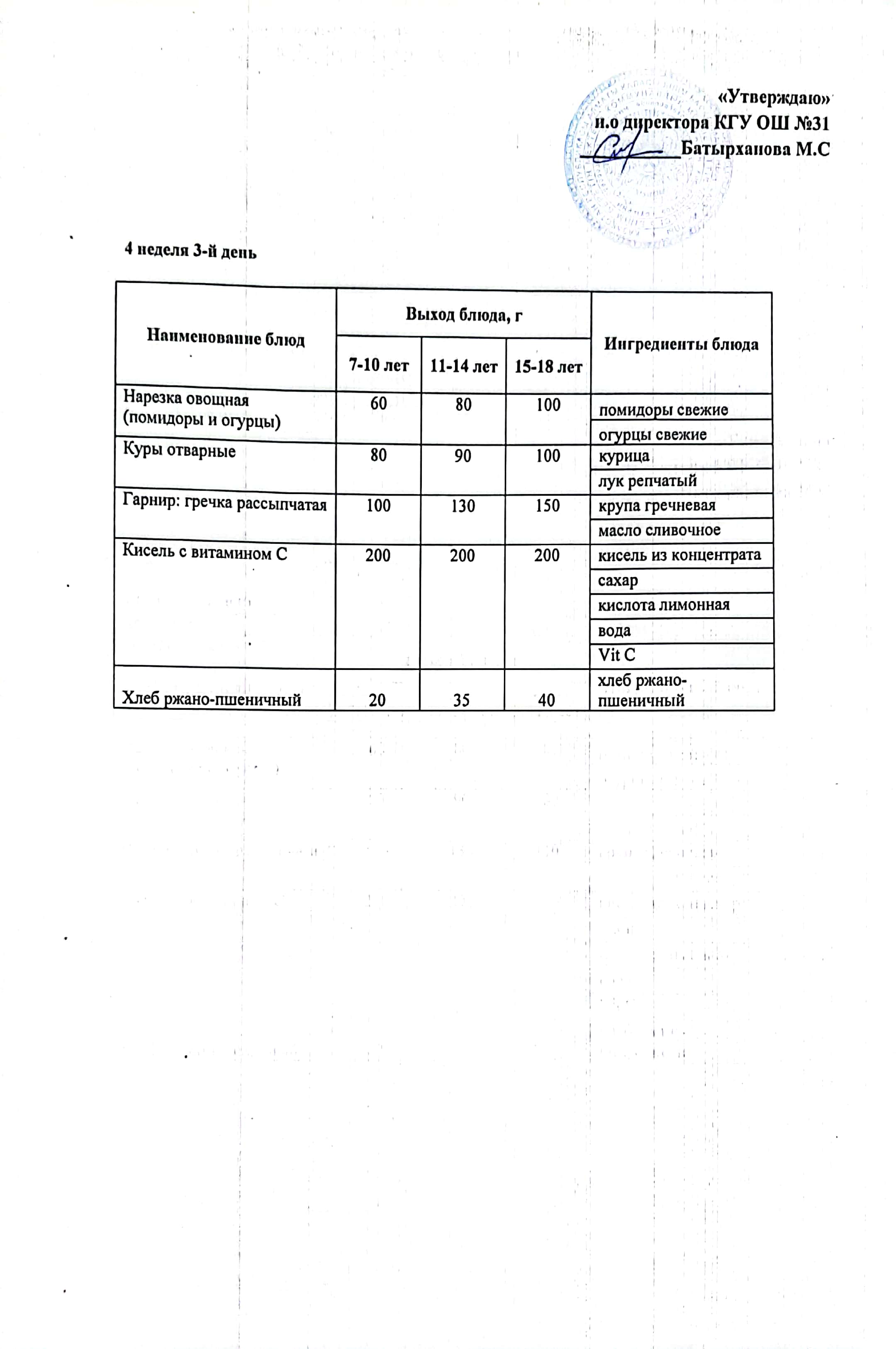 » Ас мәзірі 4 апта 3 күн. Меню 4 неделя 3 день