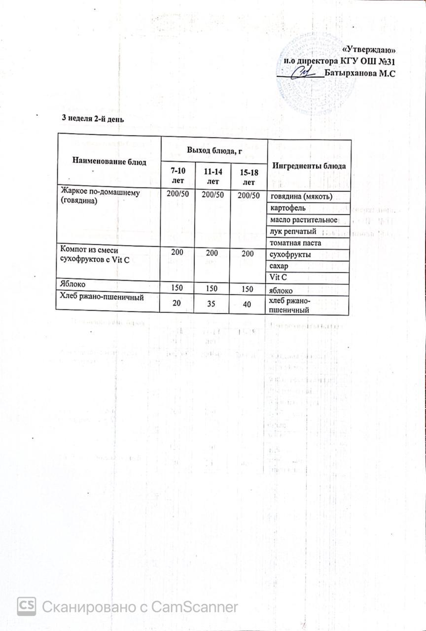 » Ас мәзірі 3 апта 2 күн. Меню 3 неделя 2 день