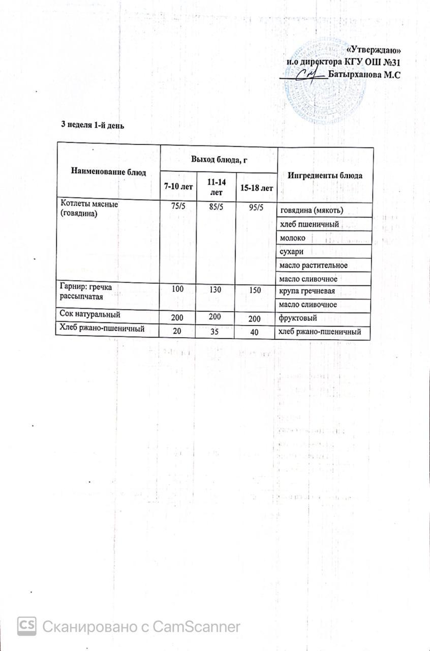 » Ас мәзірі 3 апта 1 күн. Меню 3 неделя 1 день