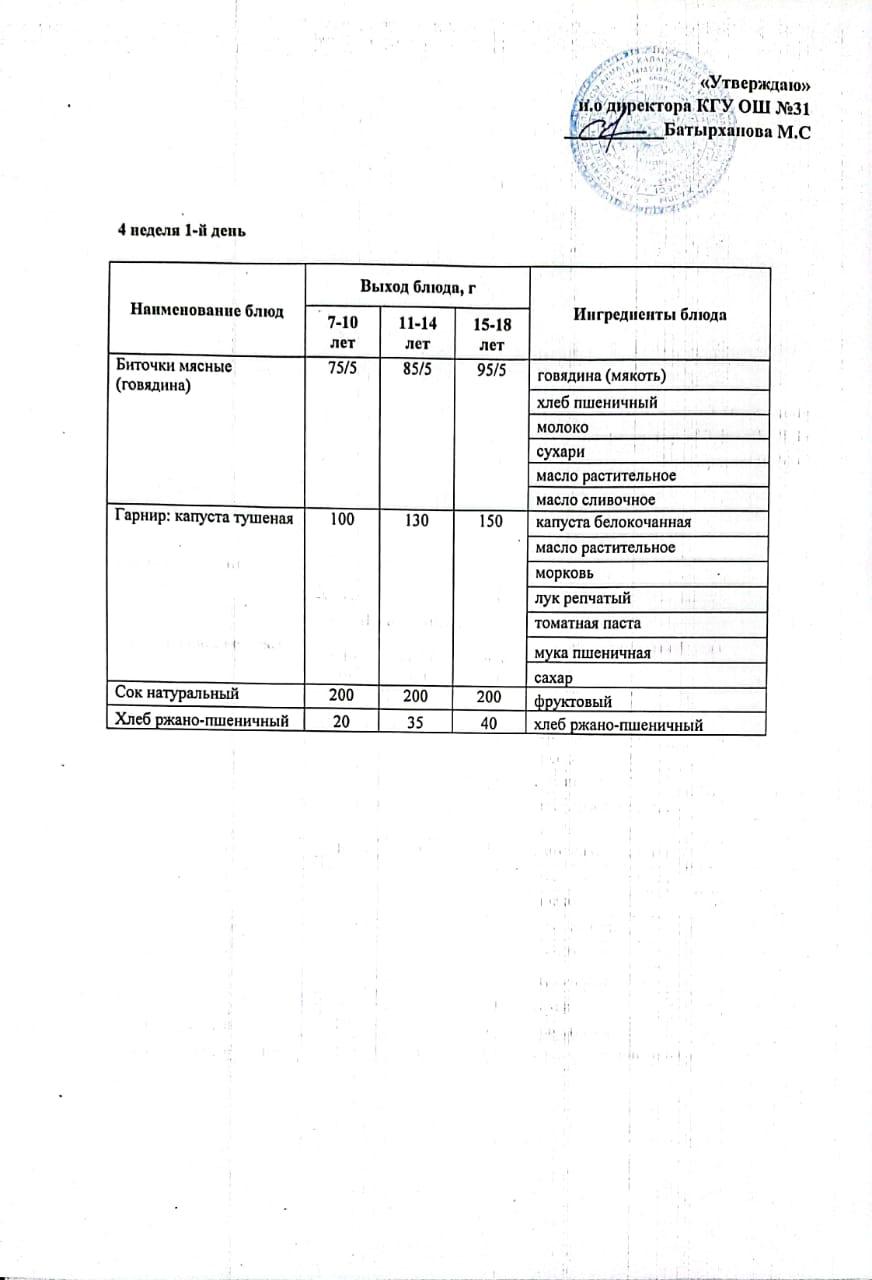 » Ас мәзірі 4 апта 1 күн. Меню 4 неделя 1 день