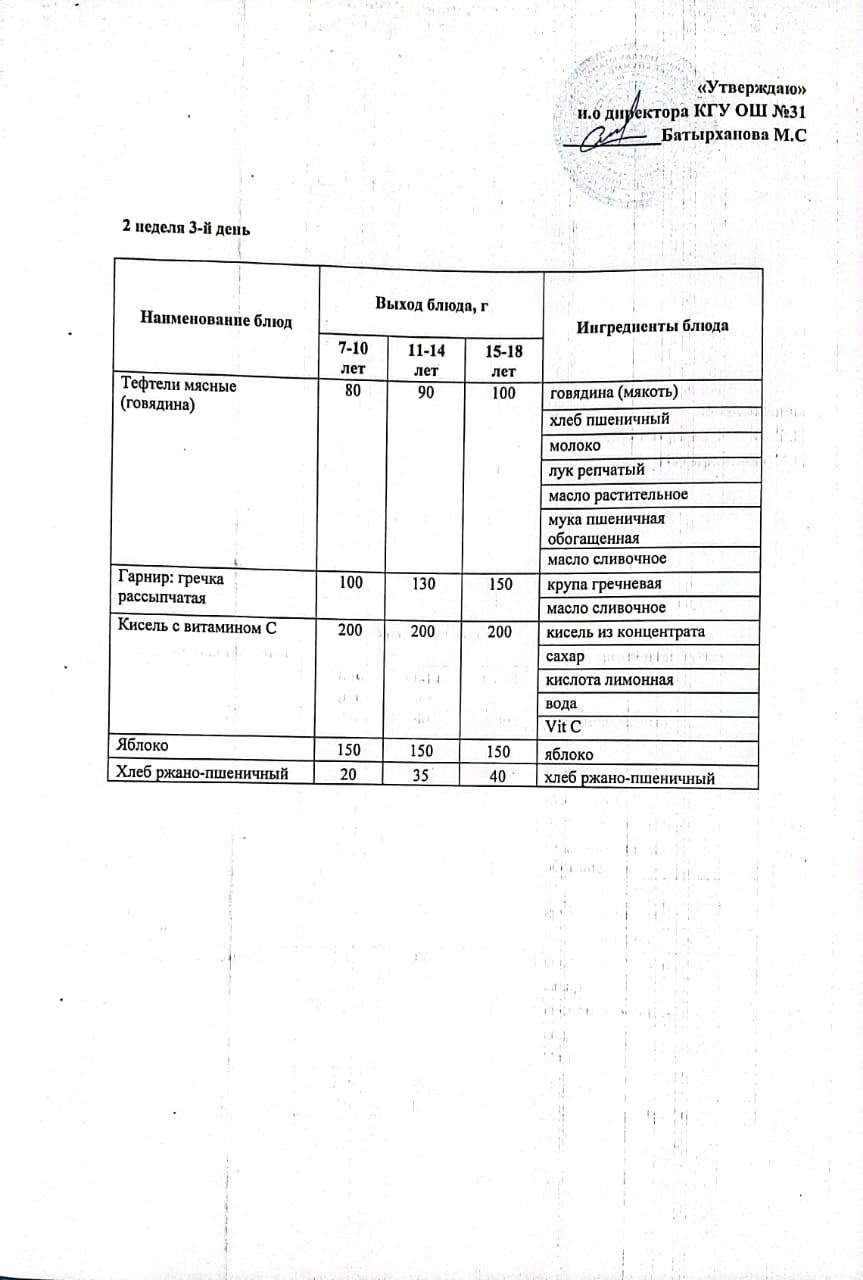 » Ас мәзірі 2 апта 3 күн. Меню 2 неделя 3 день