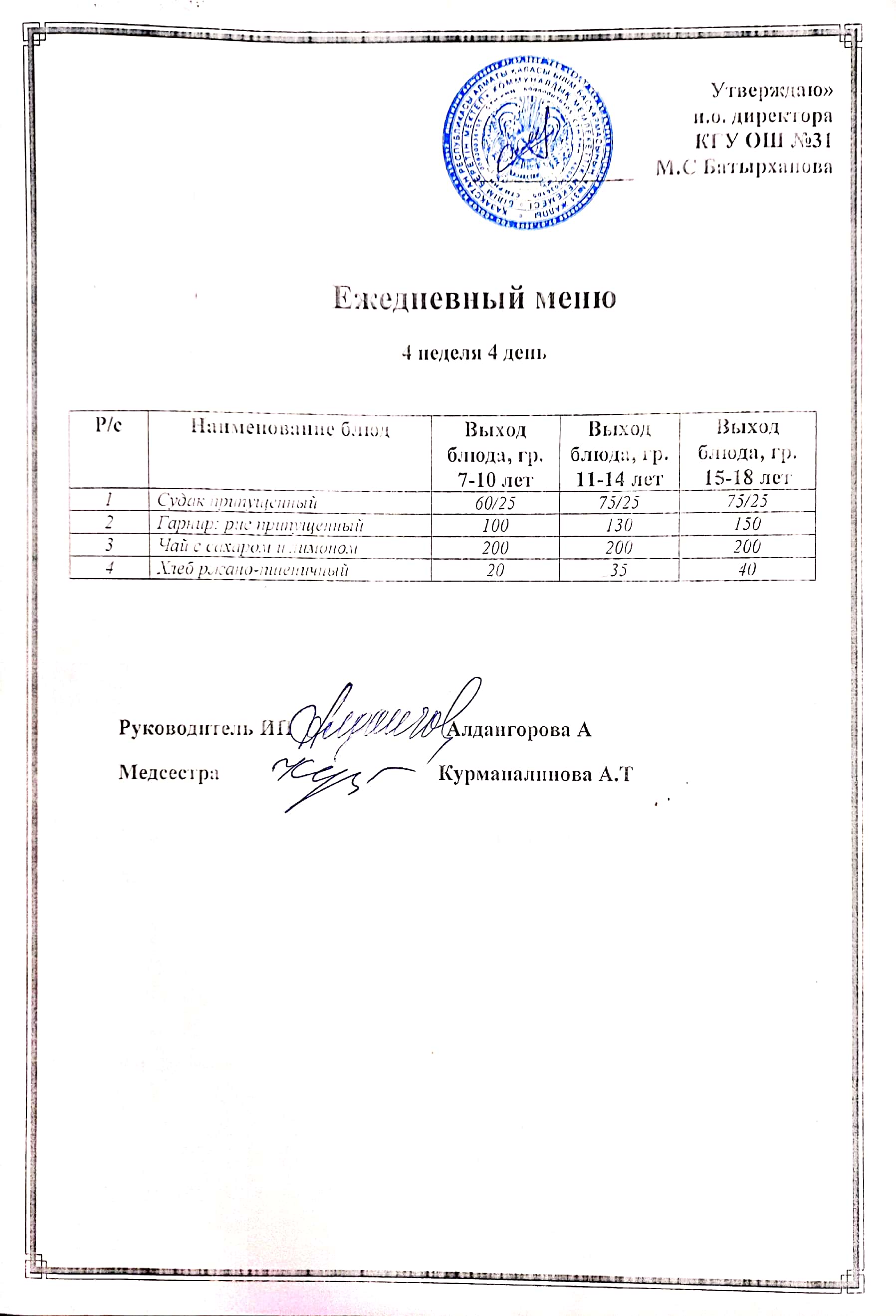 Ас мәзірі 1 апта 4 күн. Меню 1 неделя 4 день