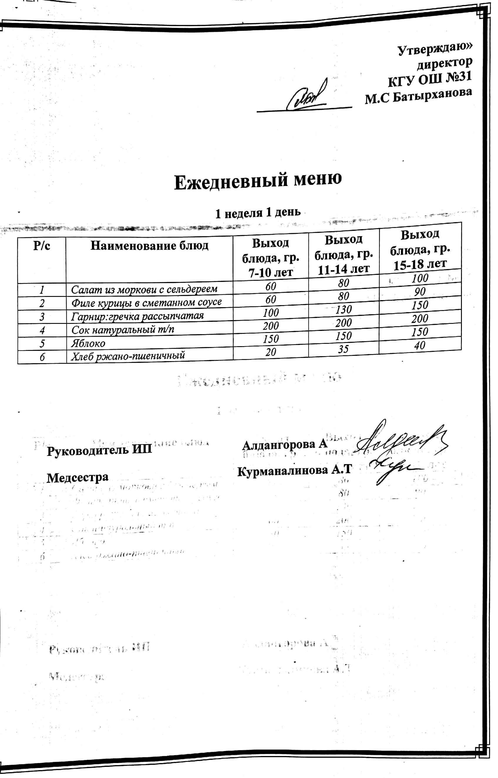 » Ас мәзірі 1 апта 1 күн. Меню 1 неделя 1 день