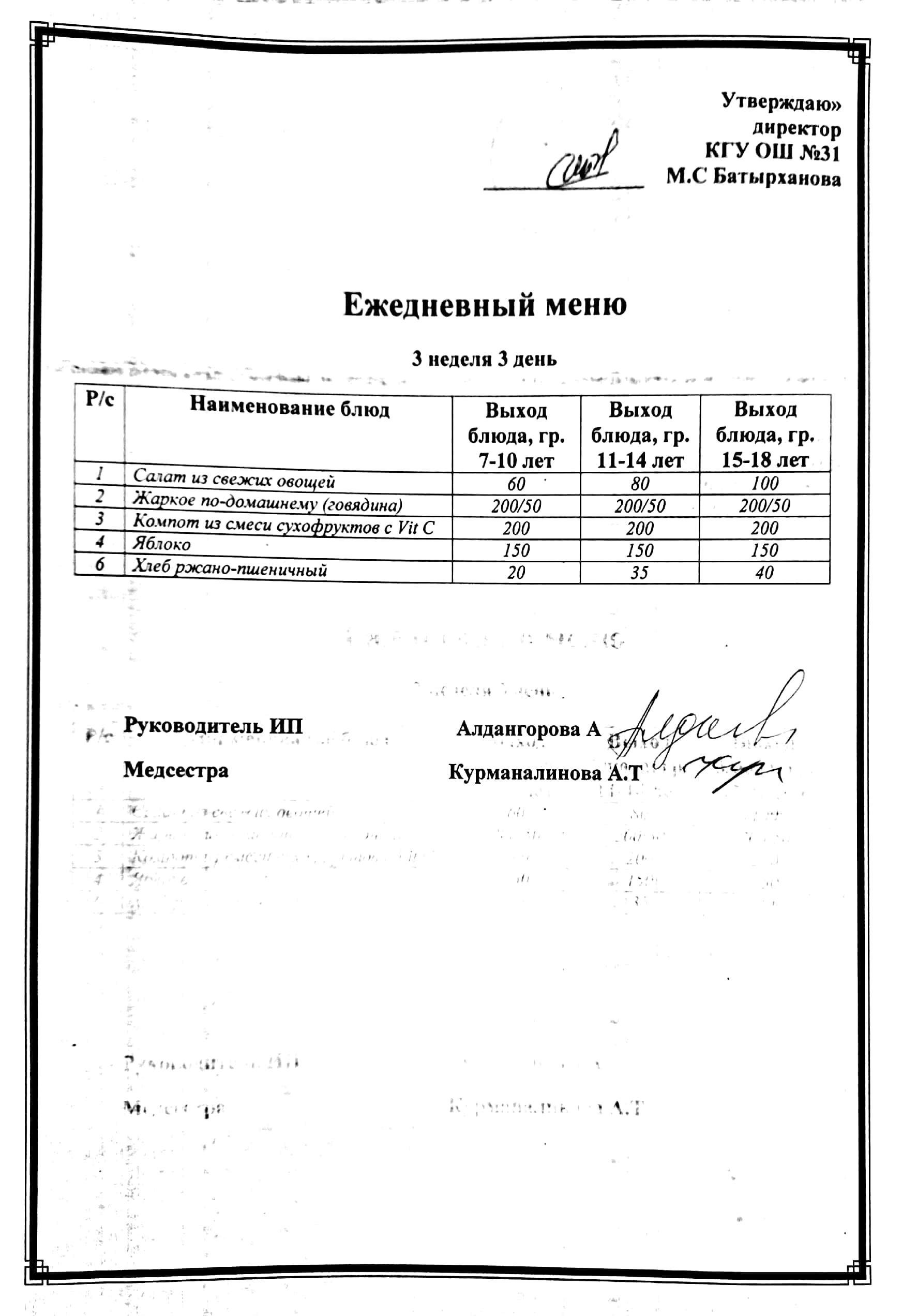 » Ас мәзірі 3 апта 3 күн. Меню 3 неделя 3 день