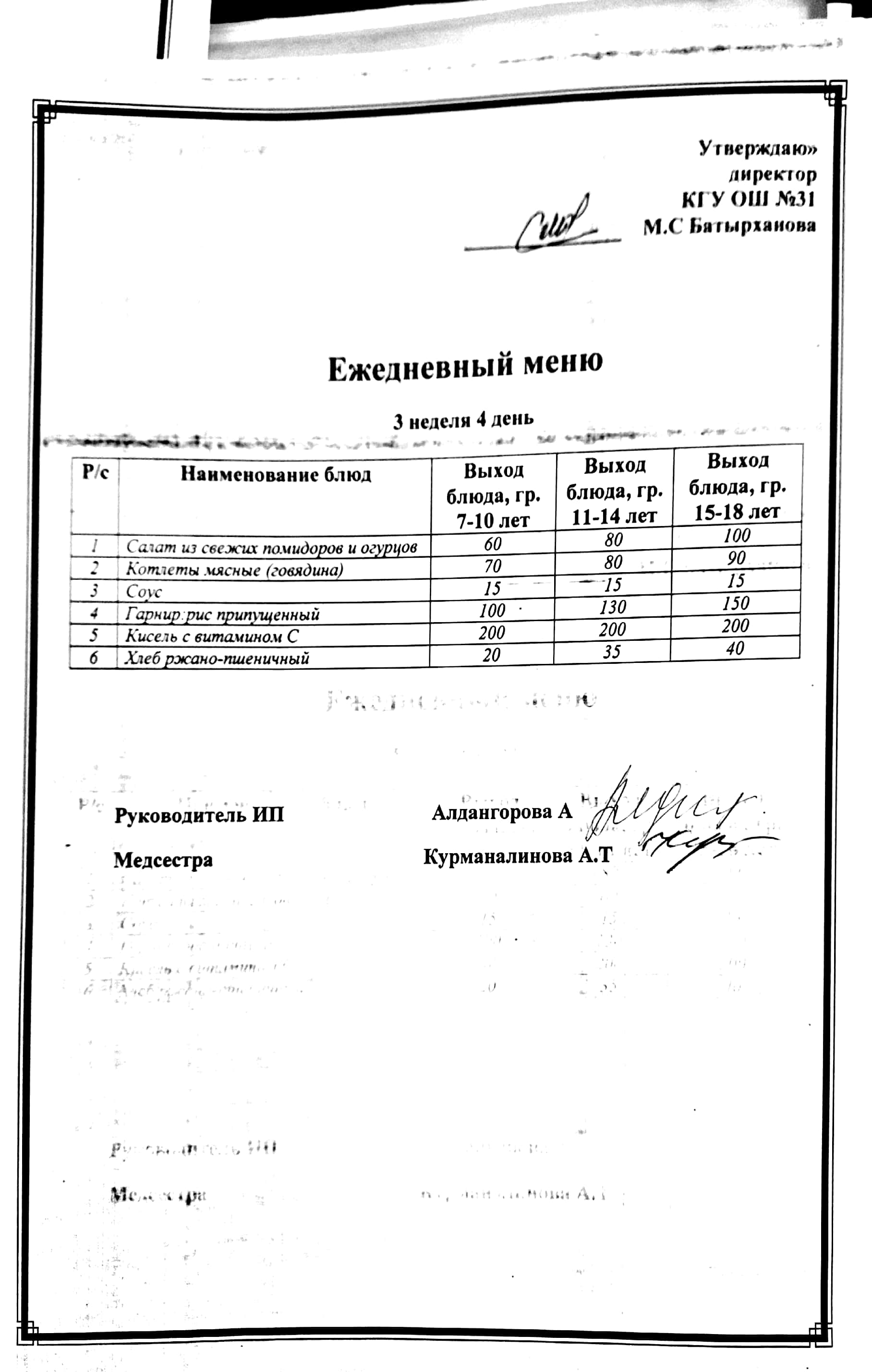 Ас мәзірі 1 апта 4 күн. Меню 1 неделя 4 день