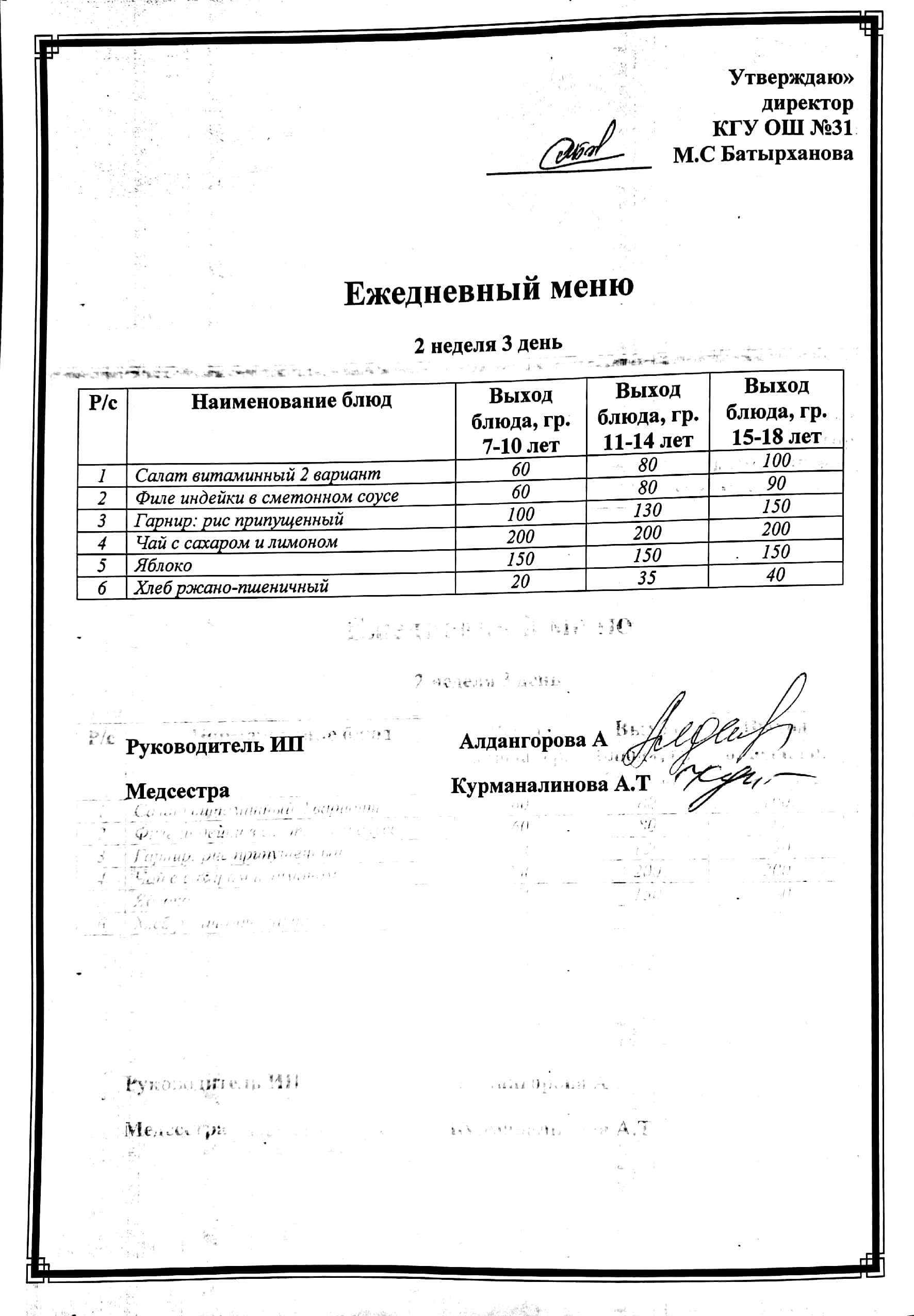 » Ас мәзірі 2 апта 3 күн. Меню 2 неделя 3 день