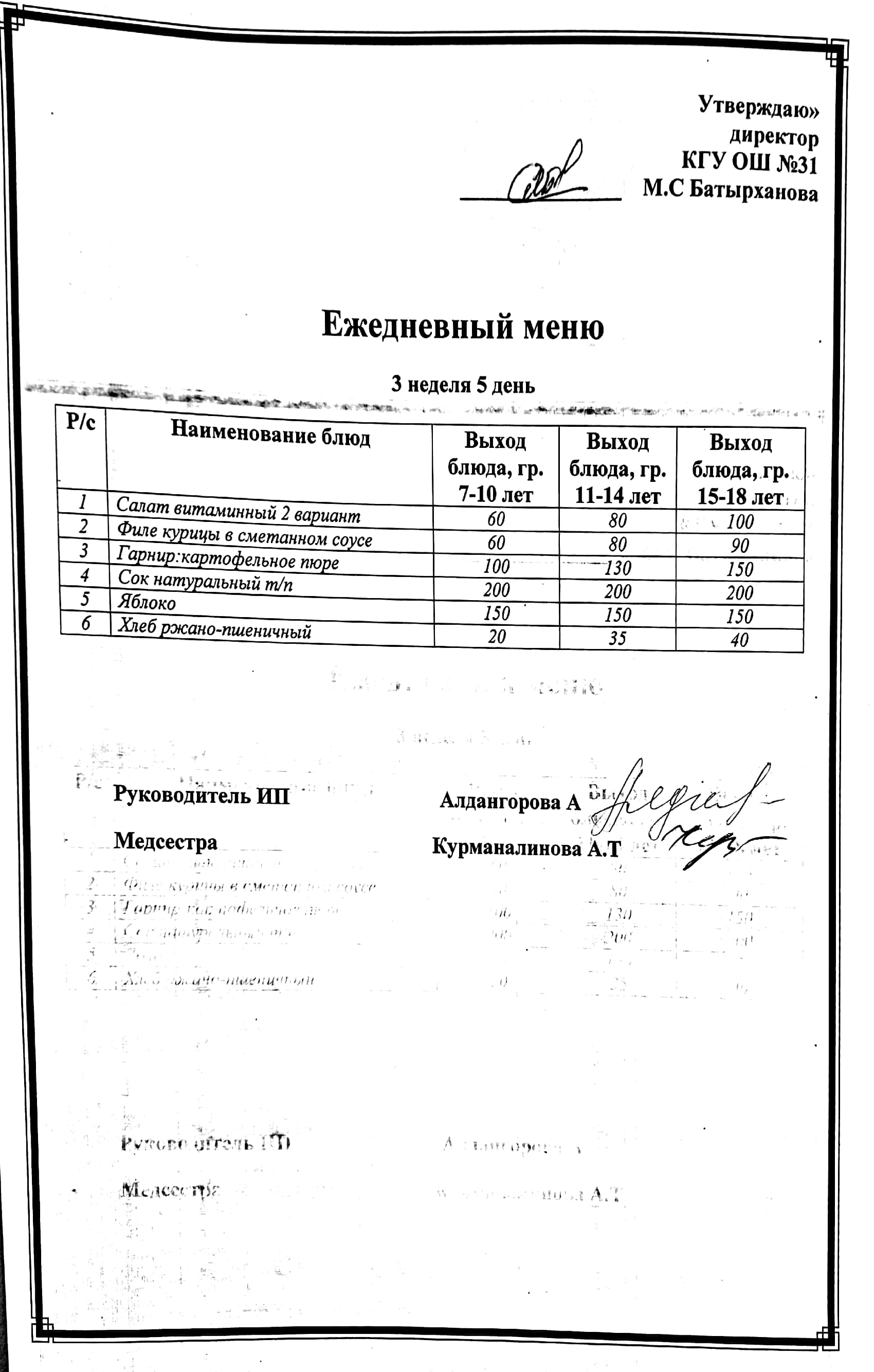 Ас мәзірі 3 апта 5 күн. Меню 3 неделя 5 день