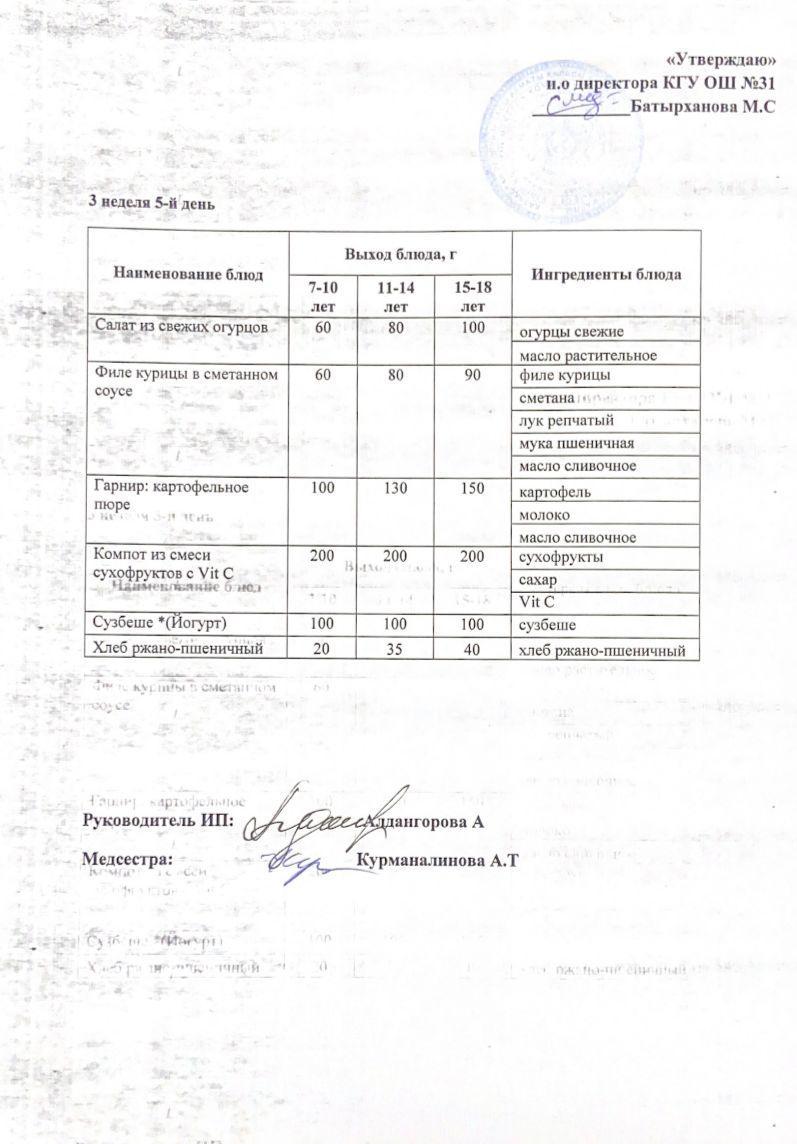 » Ас мәзірі 3 апта 5 күн. Меню 3 неделя 5 день