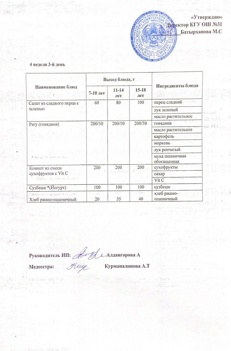 » Ас мәзірі 4 апта 3 күн. Меню 4 неделя 3 день