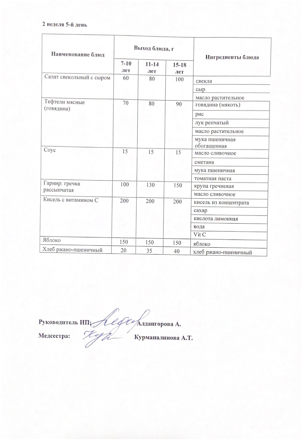 » Ас мәзірі 2 апта 5 күн. Меню 2 неделя 5 день.