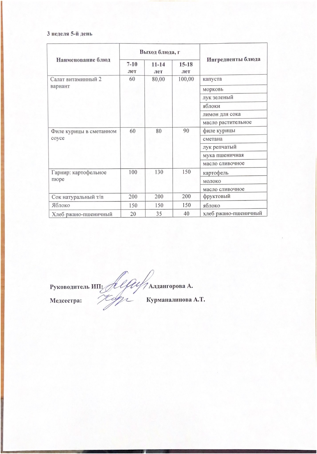 Ас мәзірі 3 апта 5 күн. Меню 3 неделя 5 день.