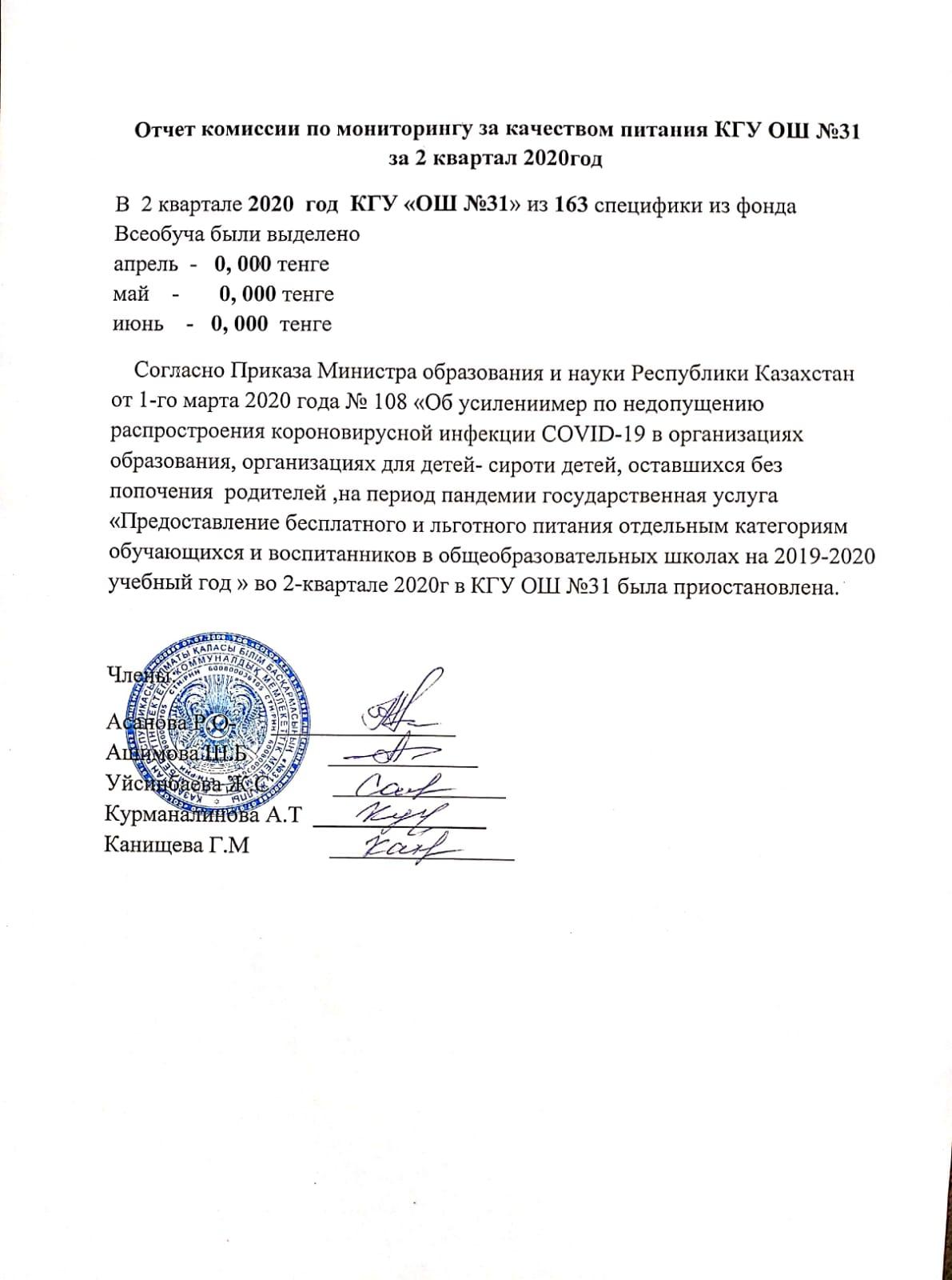 09 қазан 2021 0 1 2 3 4 5 2020 жылғы 2-тоқсандағы мониторинг туралы есеп. Мониторинг по качеству питания 2 квартал 2020год