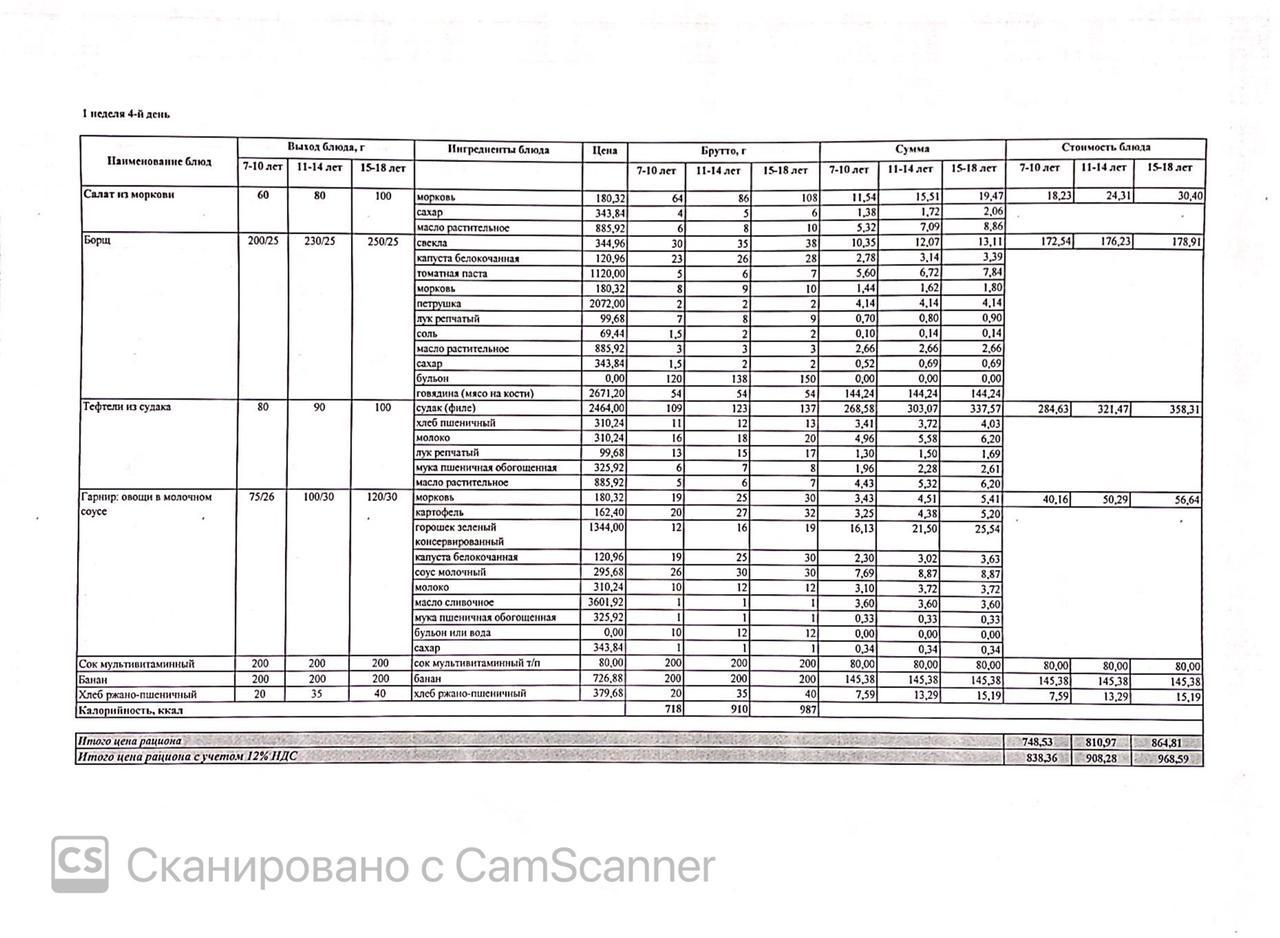 Ас мәзірі қыс-көктем 4 аптаға ауыстырылады. Меню зима-весна с изменением 4 неделя.