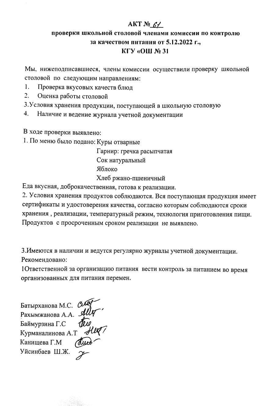 05 желтоқсан 2022 0 1 2 3 4 5 Бақылау комиссиясы мүшелерінің мектеп асханасын тексеру актісі. АКТ проверки школьной столовой членами комисии по контролю за качеством питания