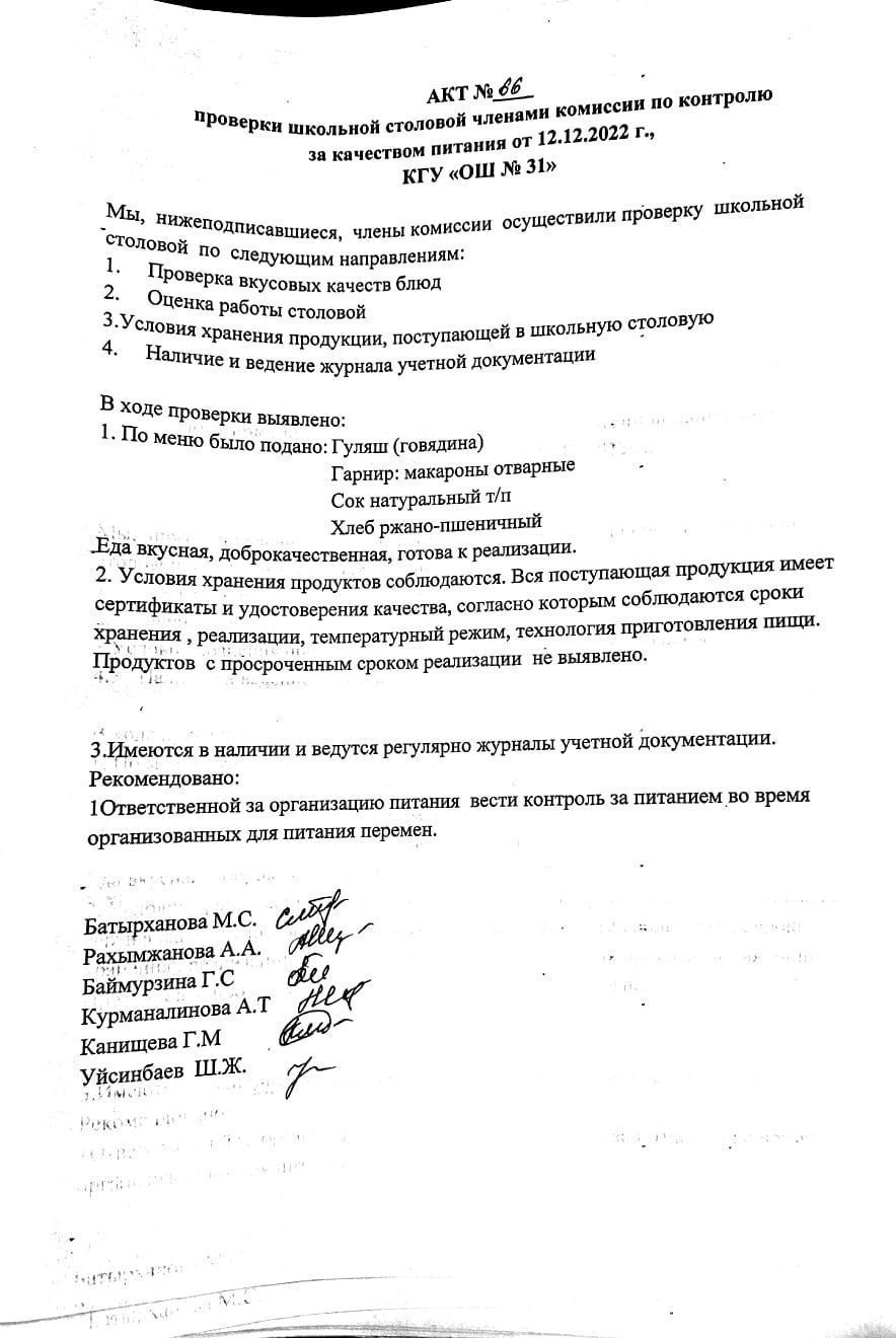 12 желтоқсан 2022 0 1 2 3 4 5 Бақылау комиссиясы мүшелерінің мектеп асханасын тексеру актісі. АКТ проверки школьной столовой членами комисии по контролю за качеством питания