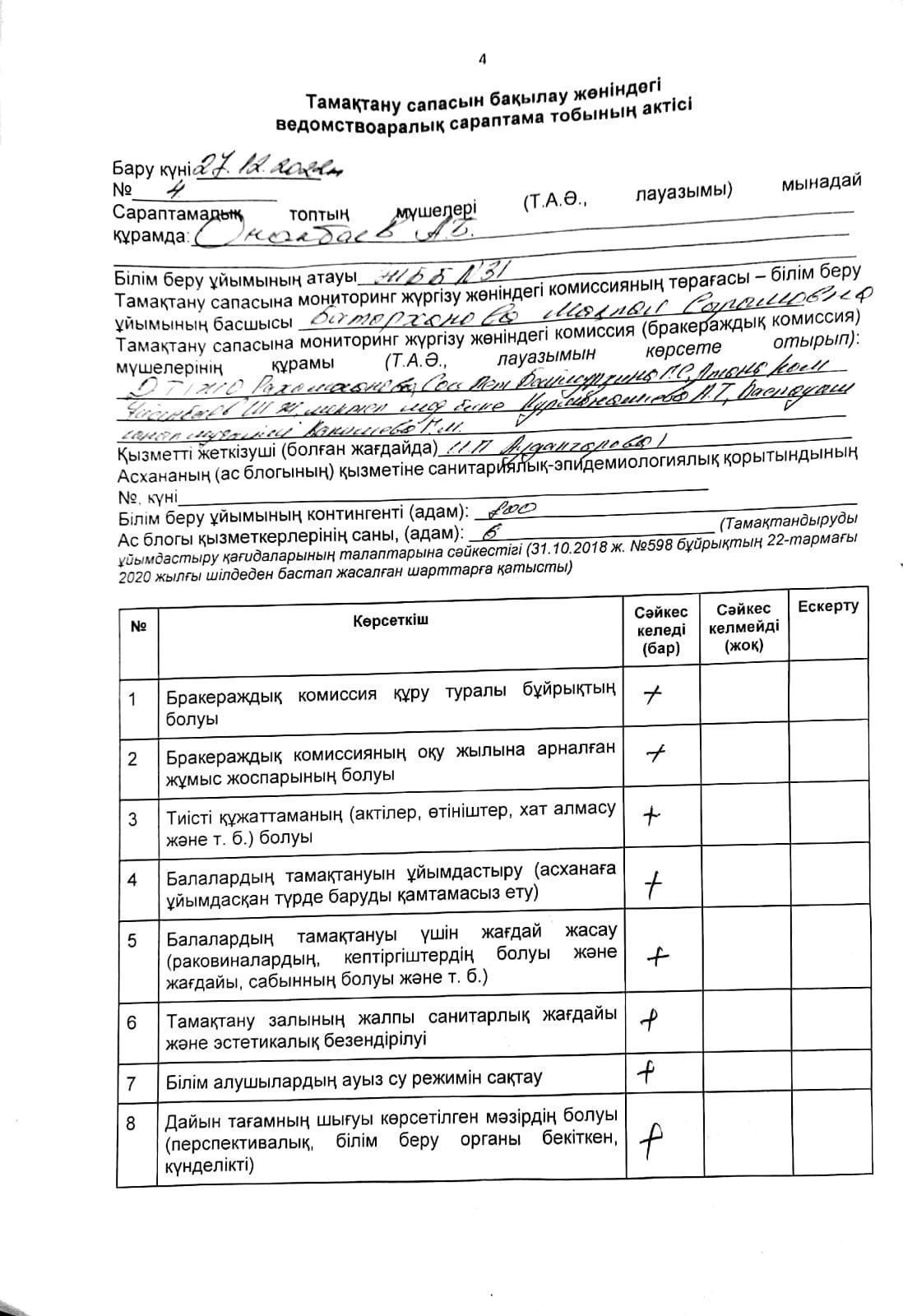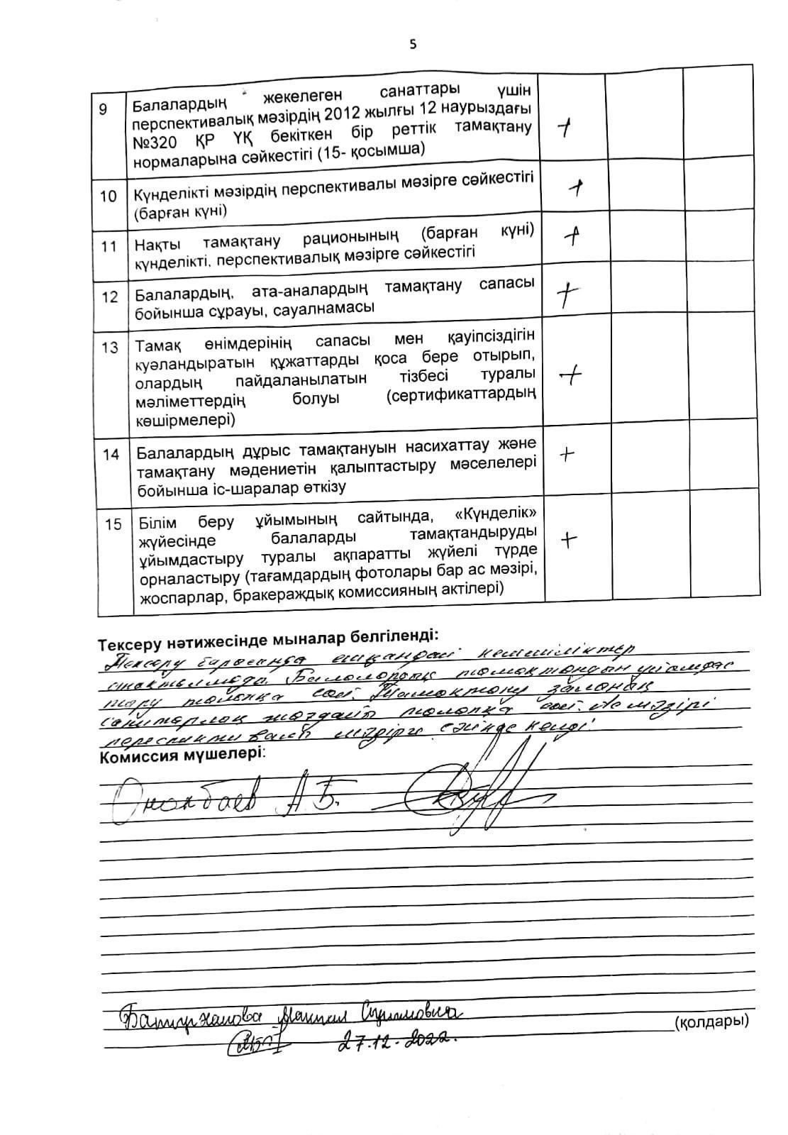 27 желтоқсан 2022 0 1 2 3 4 5 Тамақтану сапасын бақылау жөніндегі ведомствоаралық сараптама тобының актісі