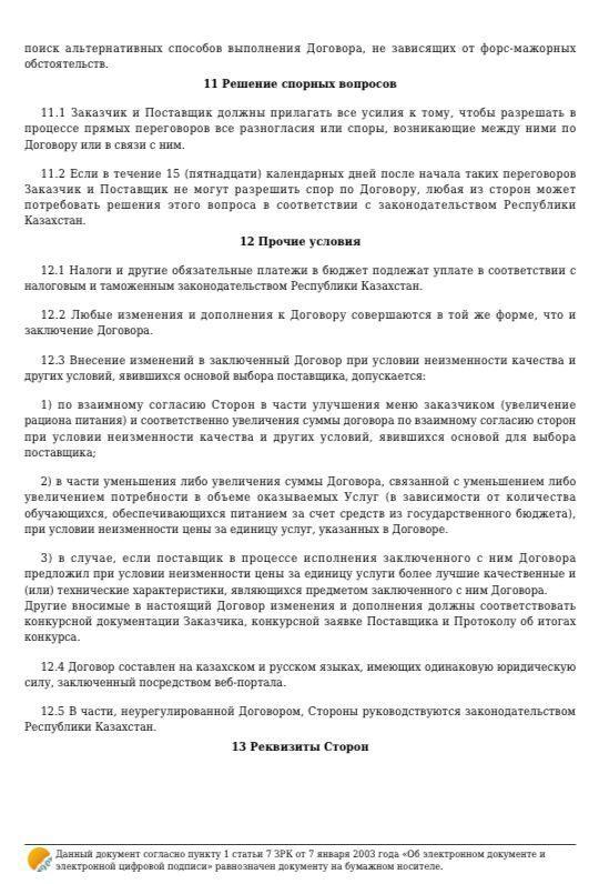 » 2025 жылға арналған тамақтану шарты. Договор по питанию на 2025г.