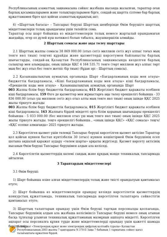 2025 жылға арналған тамақтану шарты. Договор по питанию на 2025г.